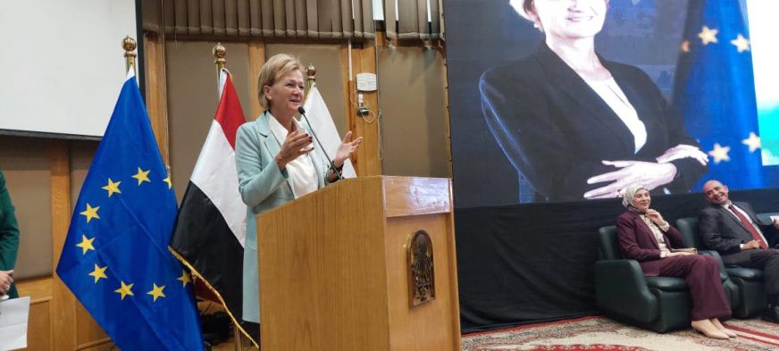Le 11 novembre, l’ambassadrice de l’Union européenne en Égypte, Angelina Eichhorst, a participé à la séance de clôture du modèle de simulation de l’UE à l’Université d’Assiout, en présence d’environ 200 étudiants. Cet événement a marqué la conclusion d’une série de sessions interactives conçues pour aider les étudiants à comprendre les institutions, les valeurs et les processus décisionnels de l’Union européenne.