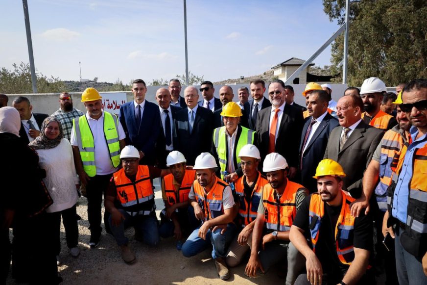 Sous le patronage et en présence de Son Excellence le Premier ministre, le Dr Mohammad Mustafa, et avec la participation de Son Excellence le Directeur de l’Autorité palestinienne de l’eau, le Dr Ziad Mimi, de Son Excellence la Gouverneure de Ramallah et d’Al-Bireh, la Dr Laila Ghannam, du Représentant de l’Union européenne en Palestine, M. Alexander Stutzmann, du Consul général adjoint de France à Jérusalem, M. Romain Laflaux, et du Président du Conseil du village d’Aboud, M. Elias Aazar, a été posée aujourd’hui la première pierre du projet de point de raccordement d’Aboud pour l’approvisionnement en eau en gros. Ce projet stratégique vise à développer le secteur de l’eau palestinien et à renforcer la sécurité hydrique nationale. La première phase du projet, d’un coût de 30,75 millions d’euros, est financée par l’Union européenne et l’Agence française de développement (AFD).