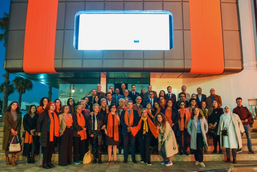 The launch ceremony officially kicked off the campaign with the illumination of the Moroccan Cinematheque’s façade in orange, a symbol of the global “Orange the World” campaign. This illumination will mark the start of a nationwide mobilization of cinemas across the kingdom, which will be called upon to light up in orange and screen an awareness message before each showing throughout the 16 days of activism.