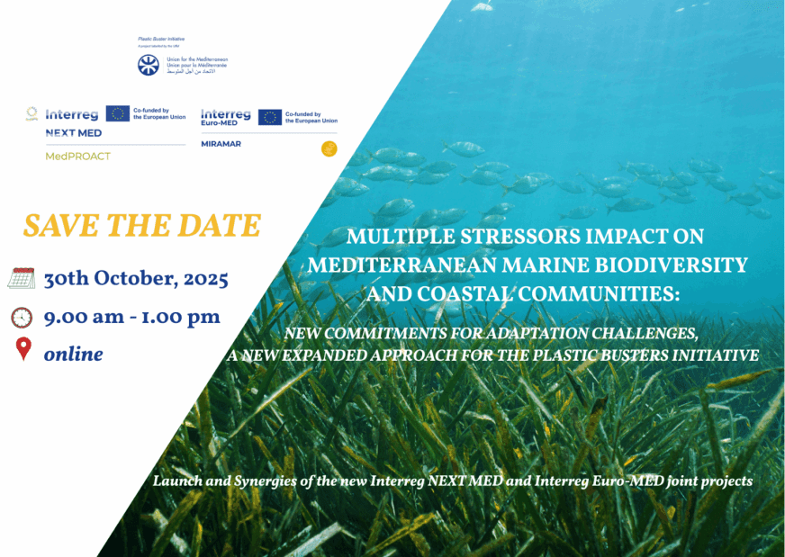 This event will gather representatives from across the region – including countries, research institutions, civil society organisations, regional partners, other interreg programmes, and key Mediterranean stakeholders – to reinforce cooperation towards a sustainable and resilient Mediterranean Sea. For MedPROACT, the initiative will represent the lauch event and new synergies and collaborations will be laid here. Labelled by the UfM in 2016, the Plastic Busters initiative embodies a joint commitment between the EU, Mediterranean countries, and the UfM Secretariat to tackle marine litter and safeguard marine biodiversity. Building on the achievements of previous Interreg-funded projects such as Plastic Busters MPAs, Plastic Busters CAP, and COMMON, the initiative is now expanding its scope to address broader environmental stressors threatening the Mediterranean basin.