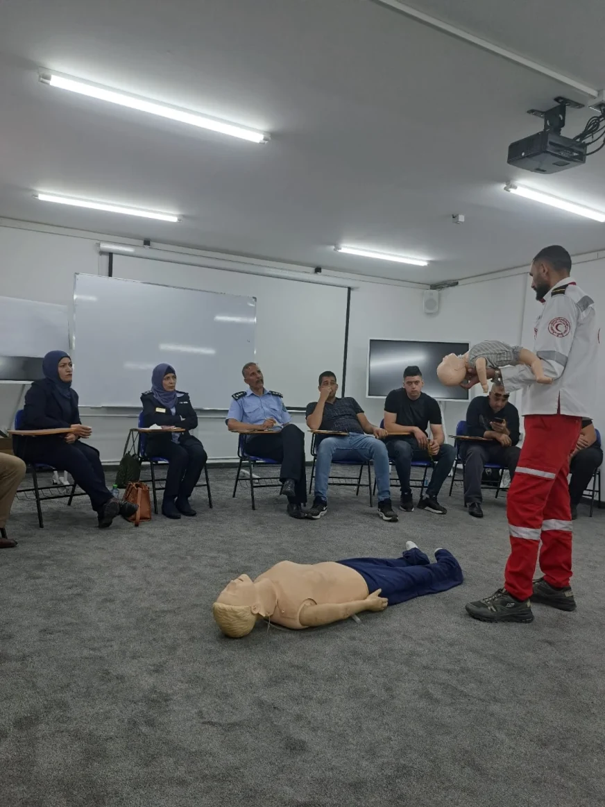 During the four-day event, the CRC officers were trained by professional paramedics from the Palestinian Red Crescent Society on several topics related to cardiac arrest, air way, Cardiopulmonary resuscitation (CPR) — an emergency treatment that’s done when someone’s breathing or heartbeat has stopped — control of bleeding and wounds. The paramedics also demonstrated how to handle different scenarios, for example how to treat inmates on wound care, choking response, managing shock, and how to apply bandages. The training included contributions from the Independent Committee for Human Rights where they highlighted the rights of individuals in incarceration and the duties of guards ensuring respect for human rights. EUPOL COPPS Advisers emphasised that the inmates have a right to basic healthcare, including emergency assistance. They also reiterated that well-trained staff help uphold international human rights standards and reduce liability for neglect or inadequate care.