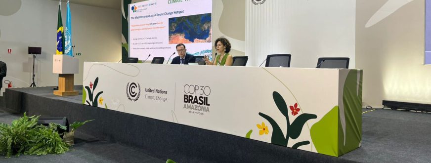 COP 30, Belém, 13 November 2025. During a dedicated press briefing, the Union for the Mediterranean (UfM) and the network of Mediterranean Scientists on Climate and Environmental Change (MedECC) urged immediate, coordinated climate and environmental action, underscoring the Mediterranean Pavilion’s role in rallying a unified Mediterranean voice and elevating a region often overlooked in global negotiations. The scientific findings, drawn from the latest available research, were presented today by Grammenos Mastrojeni, UfM Senior Deputy Secretary General, and Prof. Magda Bou Dagher Kharrat, Principal Scientist at the European Forest Institute’s Mediterranean Facility (EFIMED) and a member of the MedECC network. Their conclusion reaffirm that the Mediterranean is a global climate hotspot.