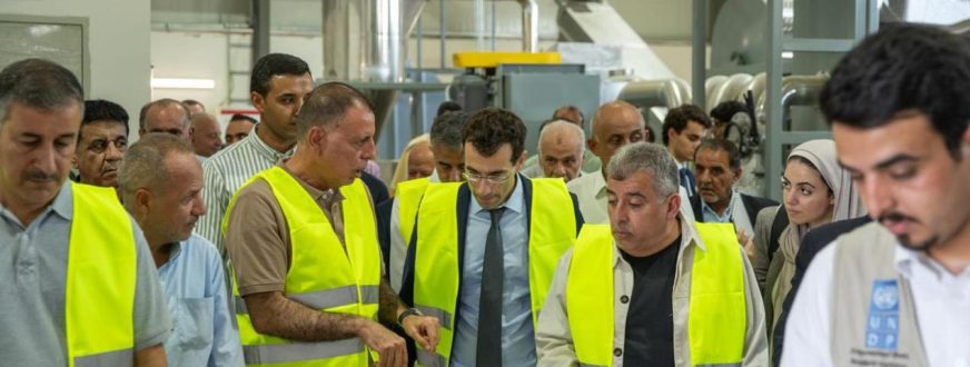 In his opening remarks, His Excellency Mazen Al-Farrayeh, Minister of Interior, commended the strategic collaboration between the Ministry of Interior, the European Union, and UNDP in supporting strategic local development initiatives across Jordan. He emphasised that the Deir Alla Agricultural Plastic Recycling Plant marks a significant step toward building a sustainable and profitable model for plastic waste management in the Jordan Valley. By establishing a local market for recycled materials, the facility is expected to generate job opportunities, strengthen private sector engagement, and promote innovation in plastic reuse and processing.