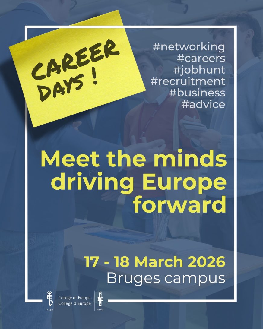 At the Careers Days, organisations have the opportunity to present themselves to the students, interview them, and meet representatives of other companies and organisations. The Career Days will be on 17 & 18 March 2026 in Bruges.