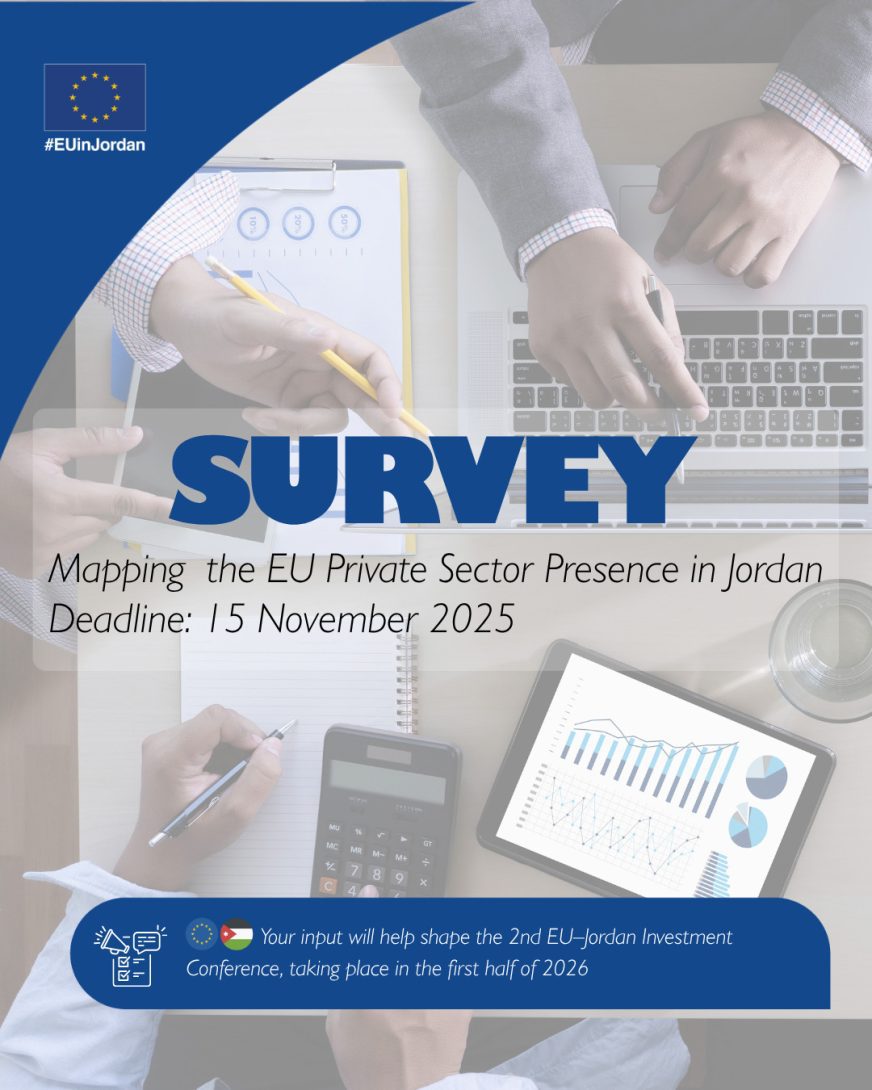 Your input is essential for shaping the analytical and policy recommendations that will guide both the EU Delegation and national stakeholders in defining priority sectors and strengthening Jordan’s investment environment. Thank you for taking the time to share your experience and perspectives.