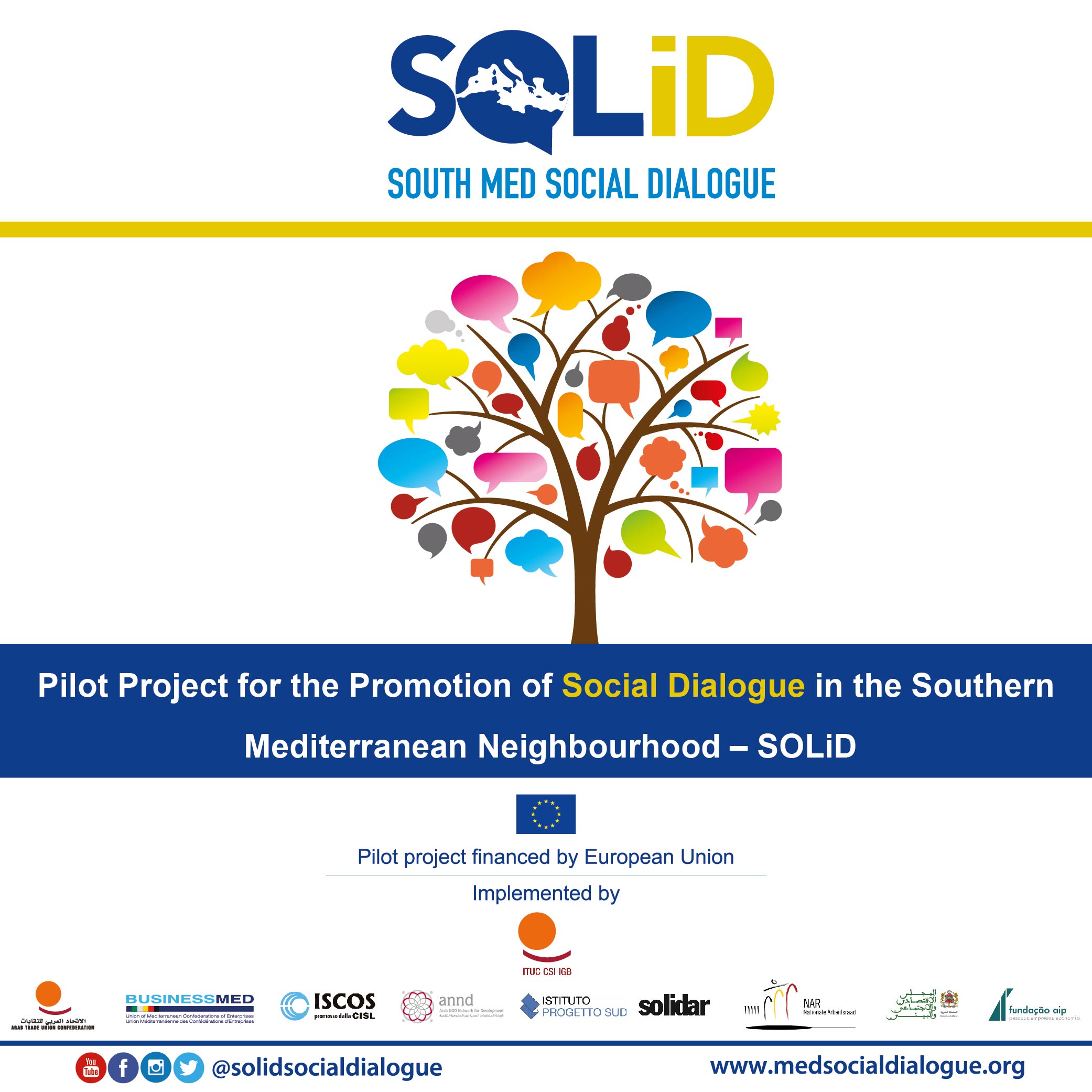 SOLiD is a pioneer programme whose ultimate goal is to promote a dynamic, inclusive and reinforced social dialogue via the development of the capacity of Trade Unions and their homologues of Employers’ Associations and civil society organizations and the promotion of a civic and multipartite dialogue between the social partners in three target countries: Tunisia, Jordan and Morocco, in view of the major political changes that the southern Mediterranean region witnessed since 2011.