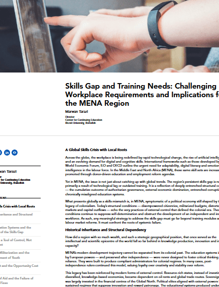 Across the globe, the workplace is being redefined by rapid technological change, the rise of artificial intelligence and an evolving demand for digital and cognitive skills. International frameworks such as those developed by the World Economic Forum, ILO and OECD outline the urgent need for adaptability, digital literacy and emotional intelligence in the labour force. In the Middle East and North Africa (MENA), these same skill sets are increasingly promoted through donor-driven education and employment reform agendas. Yet in MENA, the issue is not just about catching up with global trends. The region’s persistent skills gap is not primarily a result of technological lag or outdated training. It is a reflection of deeply entrenched structural conditions — the cumulative outcome of authoritarian governance, external economic domination, entrenched corruption and chronically misaligned education systems.
